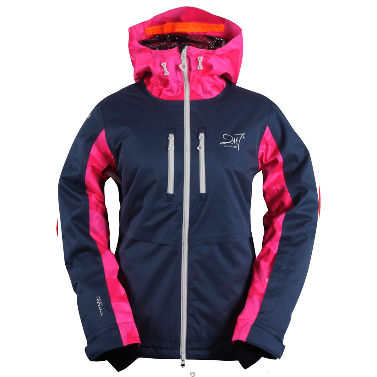 Alle syninger og lommer er vandtætte. Ventilation under armene, og aftagelig snefang, kompatibel hætte, justerbar talje og hue samt integreret Recco-system.