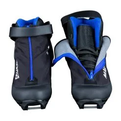 A touring boot for both skating and classic technique on groomed trails with a flexible frontfoot for classic striding and a supportive ankle cuff for skating.