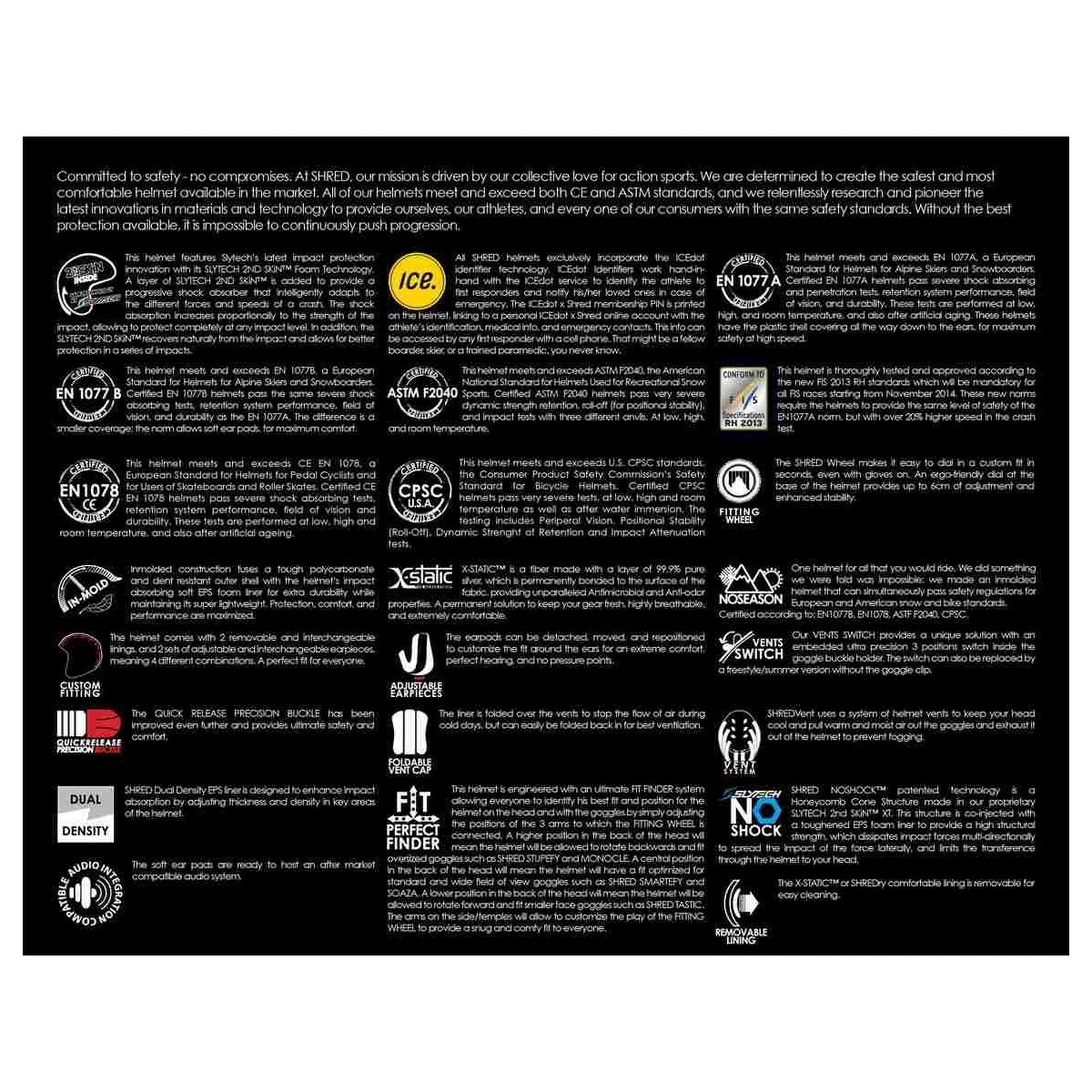 SHRED er åndbar, temperatur kontrollerende, anti-lugt og har antistatisk inderside, som holder dig tør, komfortabel og varm om vinteren, og du vil forblive køligt om sommeren. Sammen med udtagelig indvendig polstring, de er også udstyret med et udskifteligt Shred goggle spænde.